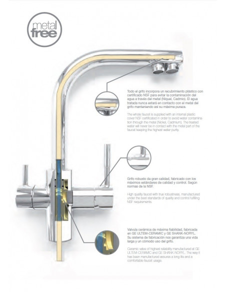 CROMADA, AMB 3 ANYS DE GARANTÍA. Alta qualitat, disseny alemany. S'entrega amb tots el material per realitzar la connexió necessaris. Amb recobriment de plàstic amb certificat NSF per evitar la contaminació de l'aigua tractada a través del metall.