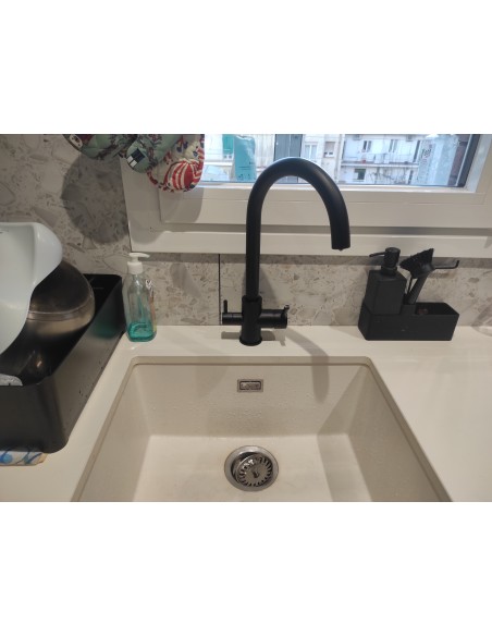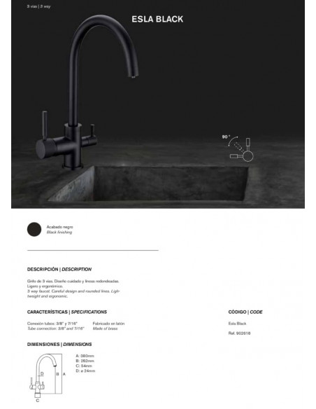 CROMADA, AMB 2 ANYS DE GARANTIA. Alta qualitat, disseny alemany. S'entrega amb tots els latiguillos de connexió necessaris. Amb recobriment de plástic amb certificat NSF per evitar la contaminació de l'aigua tractada a través del metall.