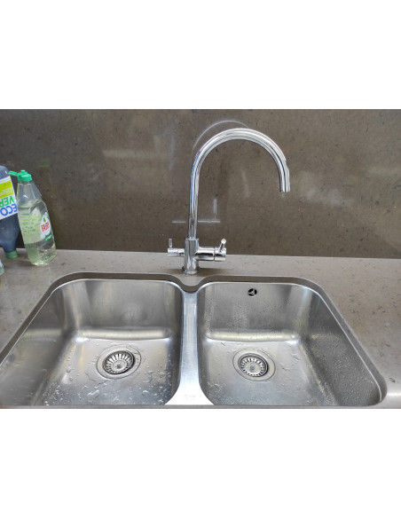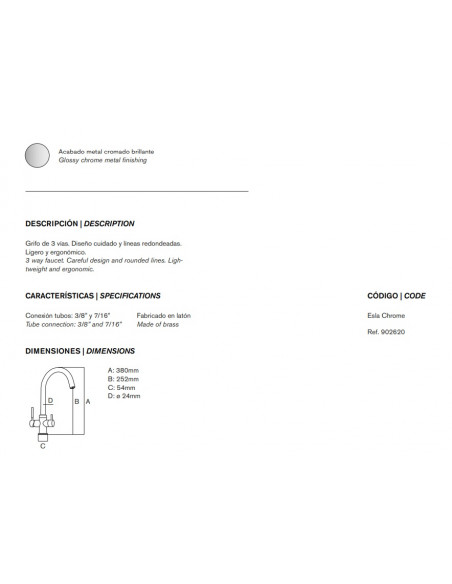 CROMADA, AMB 2 ANYS DE GARANTIA. Alta qualitat, disseny alemany. S'entrega amb tots els latiguillos de connexió necessaris. Amb recobriment de plástic amb certificat NSF per evitar la contaminació de l'aigua tractada a través del metall.