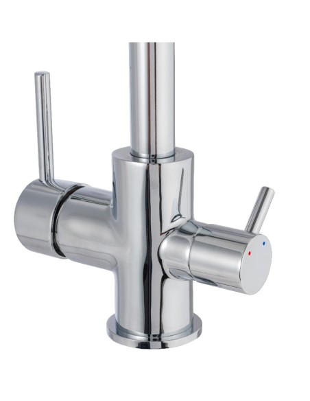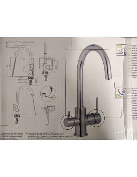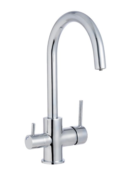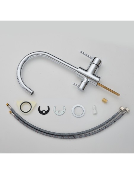 CROMADA, AMB 2 ANYS DE GARANTIA. Alta qualitat, disseny alemany. S'entrega amb tots els latiguillos de connexió necessaris. Amb recobriment de plástic amb certificat NSF per evitar la contaminació de l'aigua tractada a través del metall.