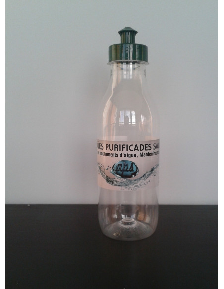 Ampolla de plàstic lliure de BISFENOL-A. No afecta a la qualitat ni al gust de l'aigua. És ideal per portar a la feina, dins de la motxilla per anar a l'escola, per excursions, etc. Capacitat de 0.5 Litres, reutilitzable.