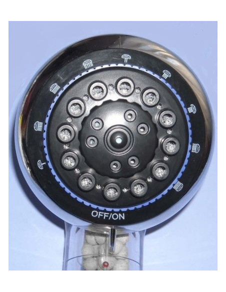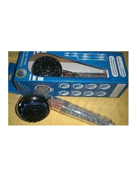 La dutxa ecològica afavoreix a la relaxació del sistema nerviós gràcies a l’alliberament natural de ions negatius, ja que té pedres de Turmalina i Germani, afavoreix la salut també de la pell netejant-la i tonificant-la sense necessitat de fer servir tants sabons. A més a més té un capçat giratori de 8 posicions diferents de sortida d'aigua.