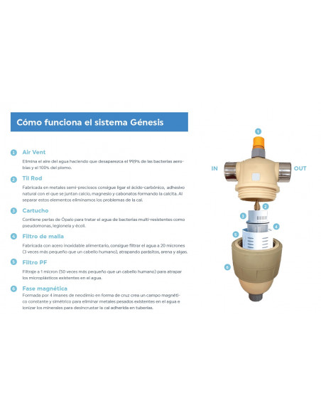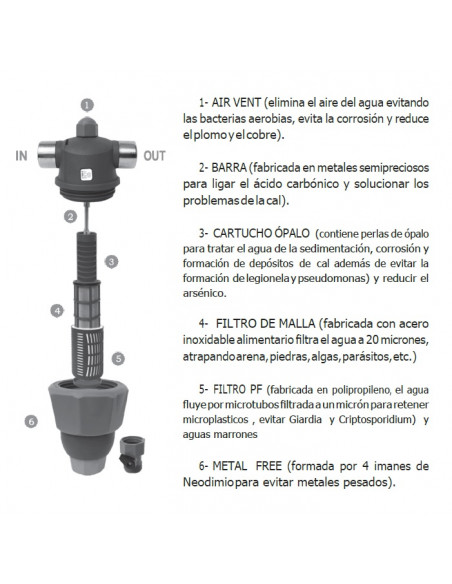 Format pels següents components: Barra Til Rod + Cartutx que conté les perles de Ópalo + FIltre de malla de sediments de 20 micres + Filtre de PF de 1 micró.