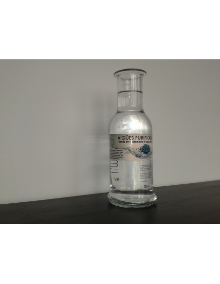 Botella de vidre d'alta qualitat, ideal per conservar l'aigua en bones condicions, per posar a les taules per servir o a la nevera. La paret de vidre està reforçada, és molt dobla. Capacitat 0,75 Litres. És pot tornar a omplir. Possibilitat de subministrament a restaurants amb etiqueta serigrafiada.