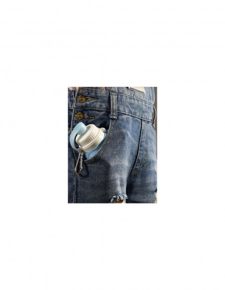 Ampolla reutilitzable de silicona, plegable. Inclou mosquetó per penjar.