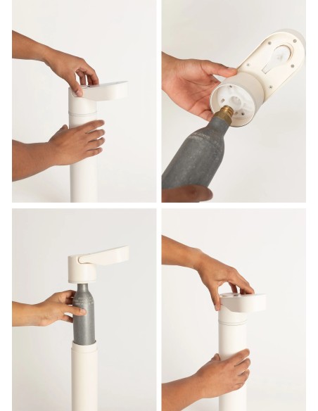 Para poder carbonatar tus bebidas simplemente tendrás que llenar la botella de 500ml de la bebida que quieras, enroscarlo con la segunda botella e introducirlo en el SODA MAKER STUDIO. La bebida carbonatada podrás introducirla en la botella de 350ml y repetir el proceso tantas veces como necesites.