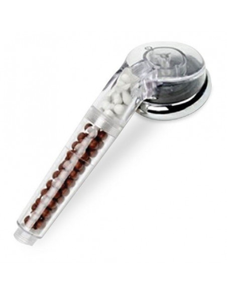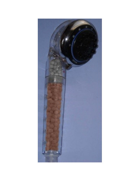 La ducha ecológica es tan efectiva y todo el mundo nota tan rápido sus beneficios porque lo que hace es favorecer este intercambio iónico y aportar a nuestro organismo estos iones negativos beneficiosos. El intercambio se lleva a cabo en las piedras de Turmalina y de Germanio que están dentro del mango, cuando el agua supera los 32ºC. Además, tiene un cabezal giratorio con 8 efectos de salida del agua diferentes para poder escoger, y facilitar así la rotura de las gotas de agua.
